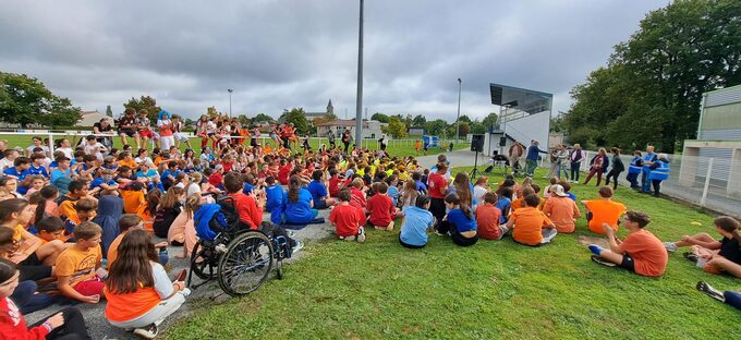 L'ensemble des élèves du collège (de la 6ème à la 3ème) et des écoles du Réseau du Pays Vert ( de la Grande Section au CM2) ont participé à cette action sportive, solidaire et festive.